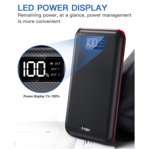 16000mah&24000mAh, high capacity,suit for overseas travel, business travel,you can charge the device many times to eliminate the anxiety of battery exhaustion.It Is Easy To Put It In The Pocket.The power banks has 3 outputs, you can charge 3 devices at the same time. Portable charger with digital display, it can clearly tell you how much power left.Power Bank Built-in safeguards can automatically protect your devices against excessive current, overheating, short-circuit and overcharging, making charging safer.Customized with you logo on it.