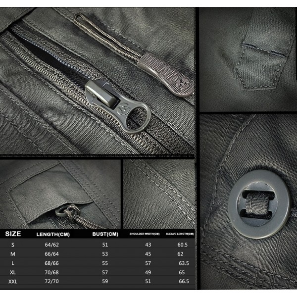 Made of 65% cotton and 35% Heavyweight Polyester.Breathable and durable shell make you working more comfortable.Multiple Pockets,2 deep outside pockets with large capacity and two inner pockets, very useful for put your hands comfortable and carry your phone,keys, tools at the same time.Full Zip.Perfect for daily wear, whatever home working or riding, hunting, fishing, camping, travelling, hiking. Can customized your logo on the chest or any parts of it.